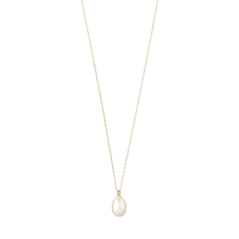 A necklace with a beautiful pendant featuring an exquisite, droplet-shaped freshwater pearl. Eila is characterised by natures balanced shaping of pearls in combination with a glowing warm, bright, shiny metal, resulting in soft shapes that feel comfortable. The collection offers new classics that can complete both timeless and contemporary looks. We have designed these beautiful styles featuring clean lines combined with soft shapes.