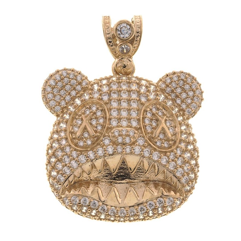 Elevate Your Style with the Bear Head Hip Hop Pendant Fully Iced CZ in 10K Gold Yellow 10K