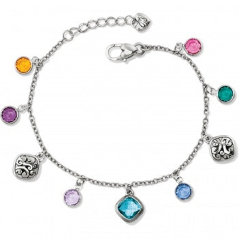 Candy-colored gems encircle your wrist in a rainbow of hues.Width: 1/2"Closure: Lobster ClawLength: 8" - 9" AdjustableMaterial: Swarovski crystalFinish: Silver plated