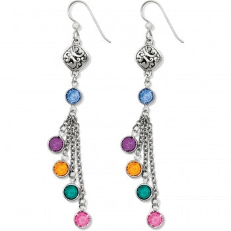 Colorful gems catch the light and sparkle, matching everything in your wardrobe.Width: 7/16"Type: French WireDrop: 3"Material: Swarovski crystalFinish: Silver plated