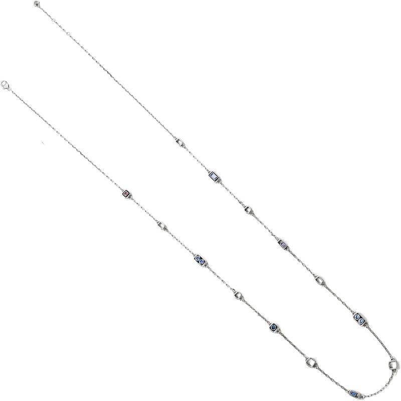 What a beautiful way to start a layered jewelry statement with a simple chain-and-station long necklace punctuated with cool blues.Style: #JM3223Color: Silver-BlueClosure: Lobster ClawLength: 42" - 44" AdjustableMaterial: Fine quality crystalFinish: Silver