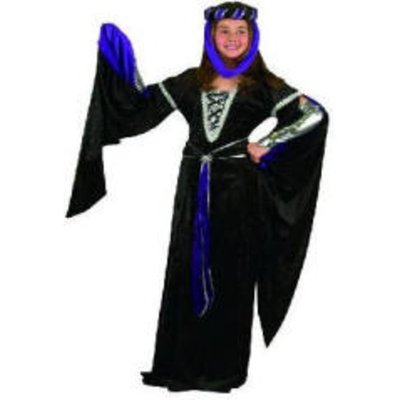 Very Good QualityIncludes: Panne Velvet gown with metallic trim & lame accent, matching renaissanceheadpiece & lame gloves.Color: Evergreen/Wine,Dark Wine/Purple, Black/Purple Size: XS (4-6), S (6-8), M (8-10), L (10-12), XL (12-14)