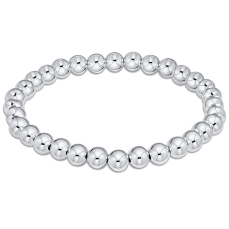You're classic, reliable, and go-to bracelet, now in sterling silver!Made with 6mm, sterling silver beadsHand beaded on high performance elastic for a slight stretch to easily roll on and off your wristMeasures 6.75"Stacks well with all braceletsPlease vis