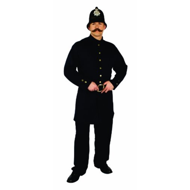 Includes: Blue Double Breast look Jacket accented with gold trim and buttons,Pants, and Black Vinyl Belt.Color: Blue (shown)Size: One Size (40-44), Plus (48-52)100% Polyester / Belt 100% Vinyl / Made in USA / Hook and Loop Closure / Machine WashGreat for p