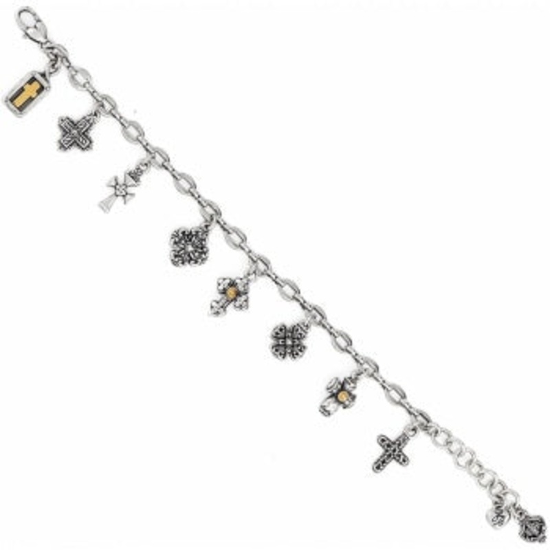 This bracelet combines the beauty of crosses with the appeal of charm bracelets.Width: 1"Closure: Lobster ClawLength: 7 1/4" - 8 1/4" AdjustableFinish: Silver plated, Gold plated