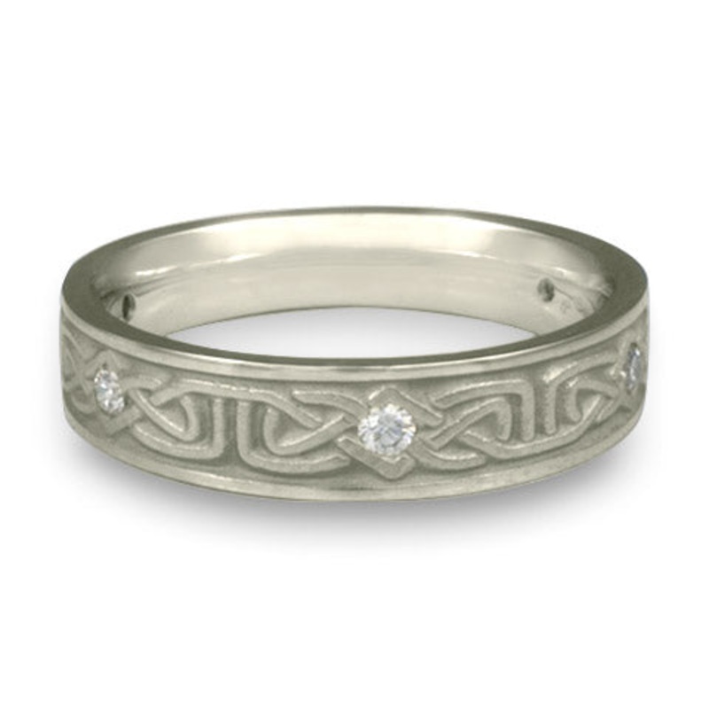 This Extra Narrow Labyrinth with Diamonds Wedding Ring in Platinum by Katherine Aberle is made with eco-friendly methods using recycled Platinum. It is sent to you via free Fedex ground shipping. This ring is available in sizes ranging from size 5 through size 12. Other sizes may also be available. Please inquire by telephone for pricing on these.