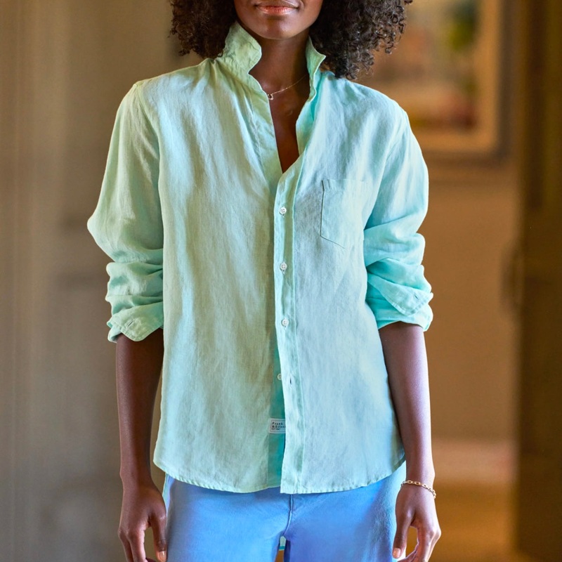 Frank & Eileen Eileen Button Up in Seafoam.Our #1 selling Eileen is the easiest-to-pull-off shirt. Designed for a relaxed fit.Fits true to sizeItalian Classic Linen, 100% LinenEILEEN-SFML
