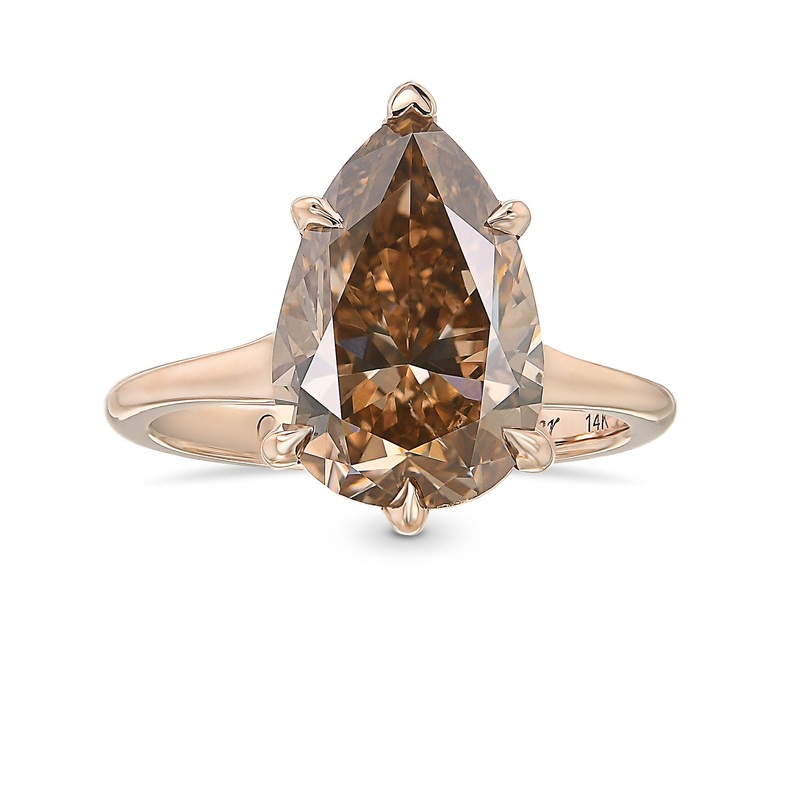 Fancy Dark Orangy Brown Pear Diamond Solitaire Ring
