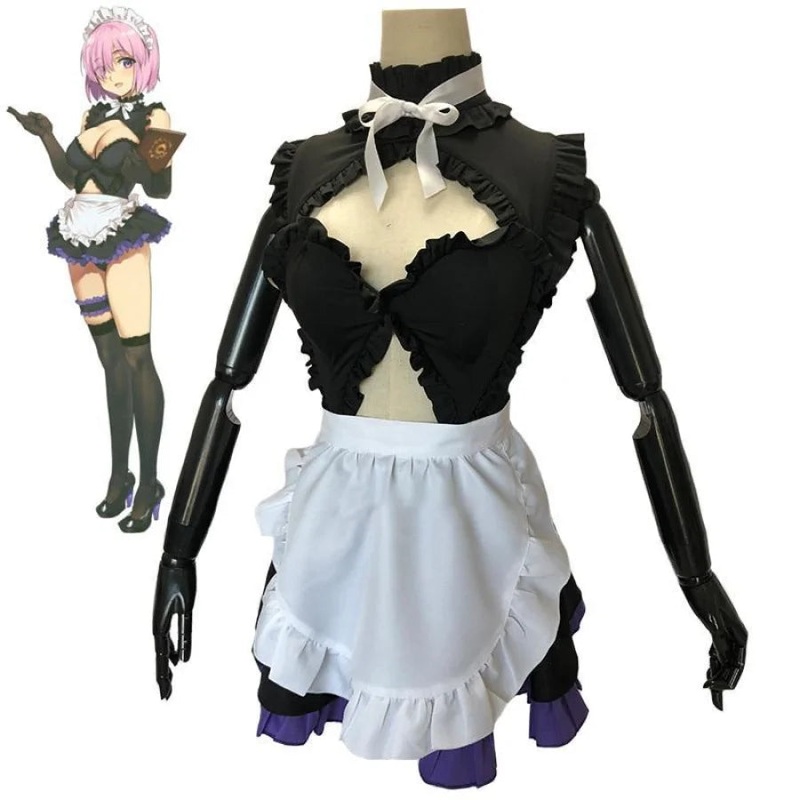 Fate Grand Order Mash Kyrielight Sexy Maid Dress Uniform Outfit Anime Cosplay Costumes N00123 S