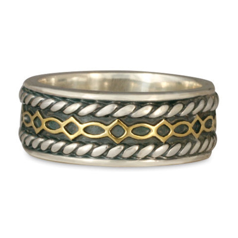 Symbolic Meaning: The symbolism of this ring is based on diamond and oval shapes. Diamonds point upward, toward Spirit, and downward, toward Earth; as well as to the left and right. It represents centeredness, connection to community and to spirit. Linking the diamonds together is the oval, a shape appearing widely in the natural world. From leaves to eggs to the orbits of planets, they give form to creativity, nurturance and emergence. The two separate lines, representing two people, create the design on this ring, suggesting a marriage about centeredness leading to creativity.