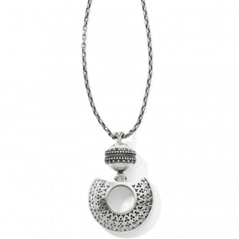Inspired by classic architectural details found in the trims of 12th century cathedrals. Pierced detailing gives an airy, everyday look.Closure: Lobster ClawLength: 36" - 38" AdjustablePendant Drop: 2 5/8"Finish: Silver plated