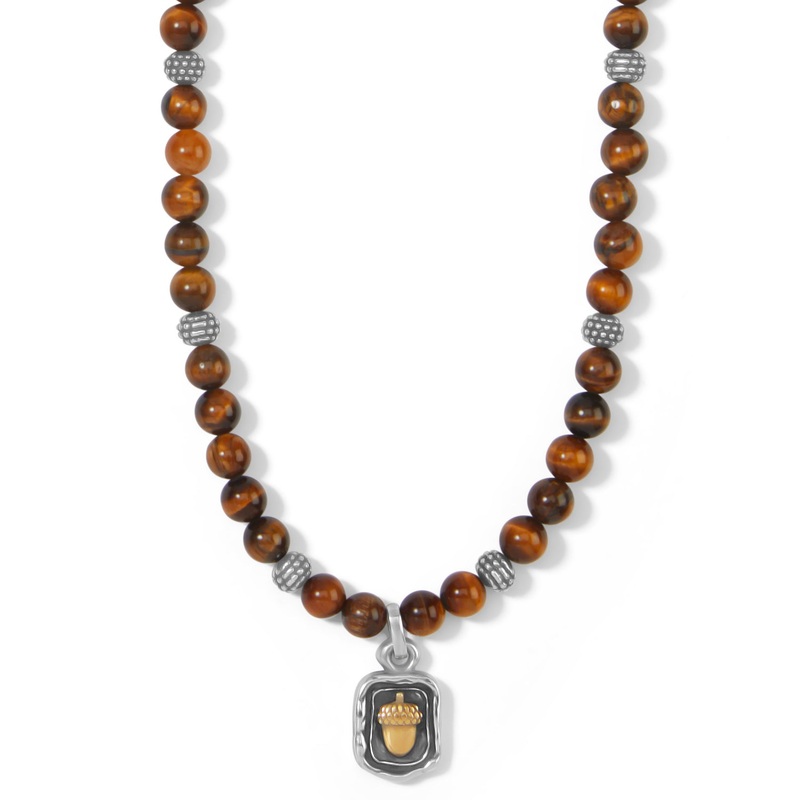 Each bead is unique and one-of-a-kind on this Tigers Eye necklace centered with an acorn pendant symbolizing prosperity and luck.