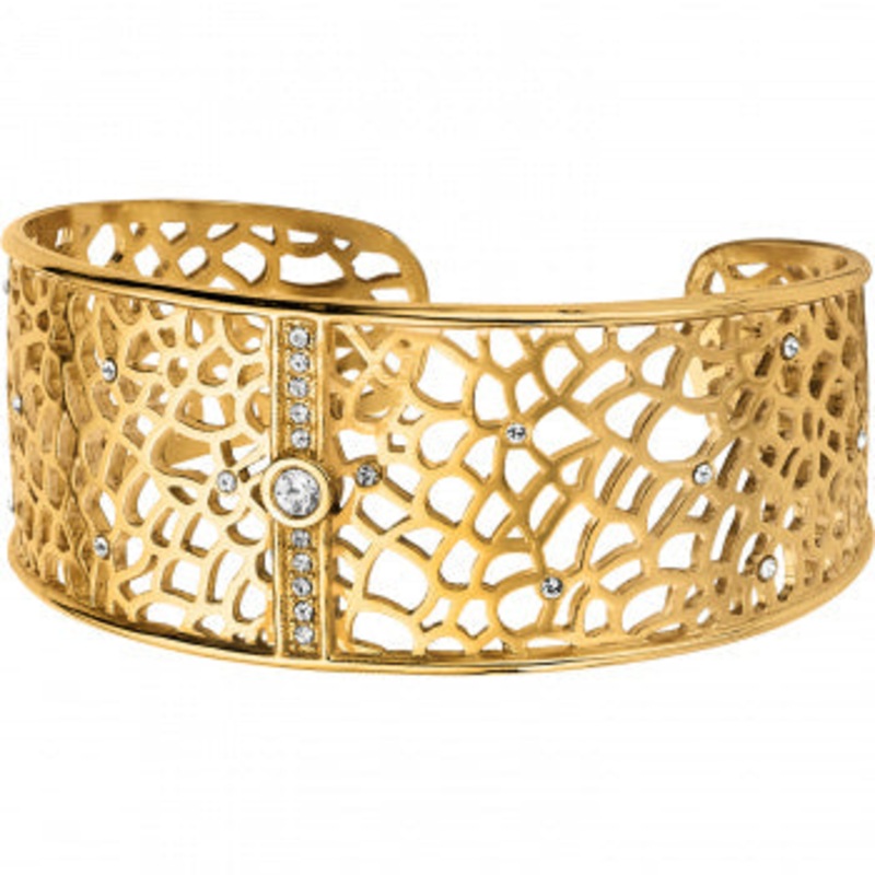 Inspired by fan coral, the airy delicate motif of this golden cuff sparkles with drops of Swarovski, looking as though it just emerged from the sea. A fine jewelry feel will guarantee compliments.Width: 1 1/16"Closure: CuffDiameter: 2 5/8"Material: Swarovs
