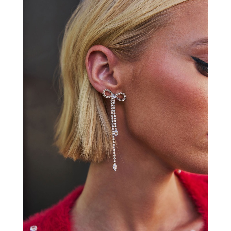 Add the perfect hint of sparkle to your look with the Final Touch Rhinestone Bow Earrings, the ultimate accessory for embracing your feminine and romantic side. These lightweight beauties are all about the details, featuring a dazzling rhinestone-embellished bow design made from high-quality rhodium, ensuring a luxe feel that pairs perfectly with the shimmering pave rhinestones. Whether youre heading to a romantic dinner or a fall wedding, these studs are your new jewelry box staple.