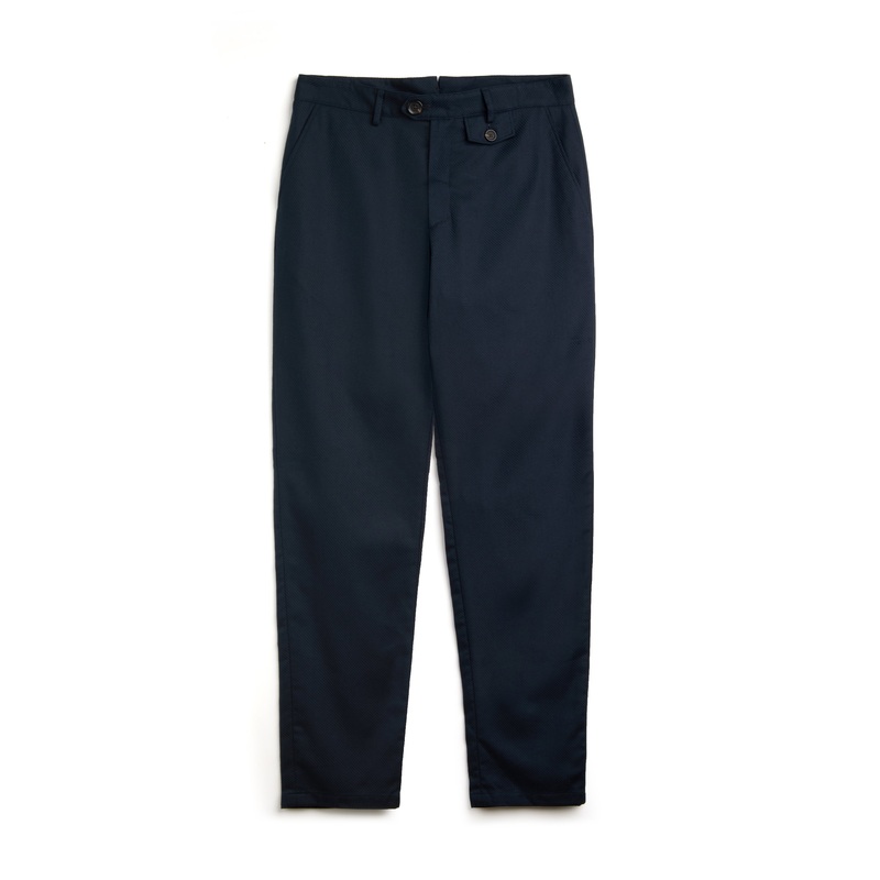 ‘s fishtail trousers are so-called because of the v-shaped cut in the rear of the waistband, which is a reference to classic men’s trousers that had room for buttons for braces. This style is crafted from a lightweight stretch cotton in a cavalry twill and can be worn as a suit with our matching jacket.
