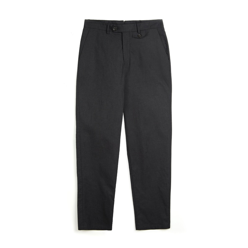 's fishtail trousers are so-called because of the v-shaped cut in the rear of the waistband, which is a reference to classic men's trousers that had room for buttons for braces. This style is crafted from a soft cotton melange and can be worn as a suit wit
