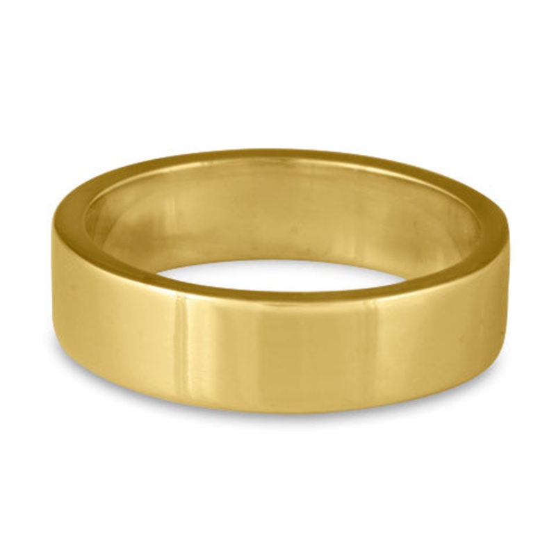 Flat Comfort Fit Wedding Ring, 18K Yellow Gold 6mm Wide by 2mm Thick.