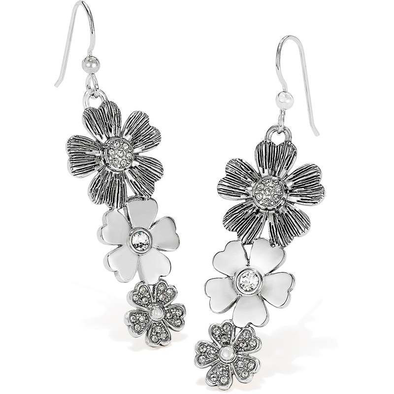 A trio of flowers sparkles and shines on these sweet and feminine silver drop earrings, perfect for spring through summer!