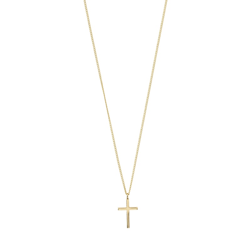 Have faith in the details with the gold-plated FLYNN necklace from . A sleek piece featuring a slender curb chain and a shiny cross pendant. A classic you can style solo or in a beautiful combo with other necklaces for a personalised layered look. The necklace measures 40 cm + 12 cm extension chain, is water-resistant, and made from 97% recycled materials with care for our shared planet.