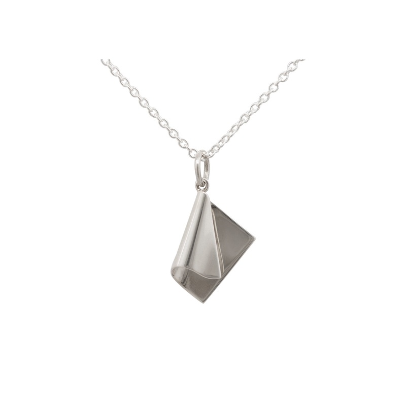 Delicate hand folded squarePendant in polishedWhiteGold or Platinum.New design by Tony Furion for Jens Hansen.If you desire adifferent precious metal or price point please ask, we would love to look into some options for you and createsomething that is tru