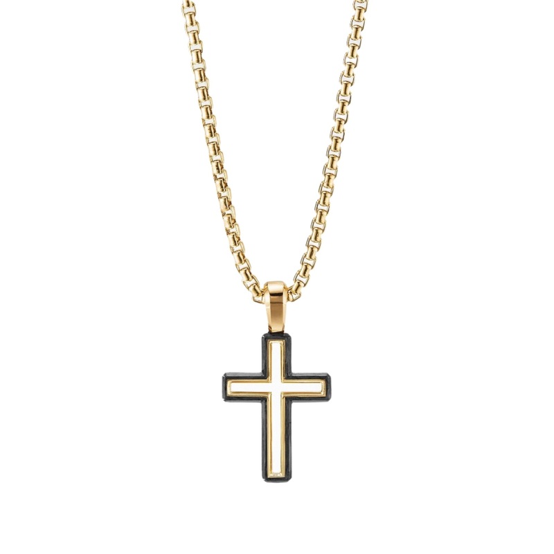 18-karat yellow gold Forged carbon, Pendant, 24mm Please note: pendant only, chain sold separately.