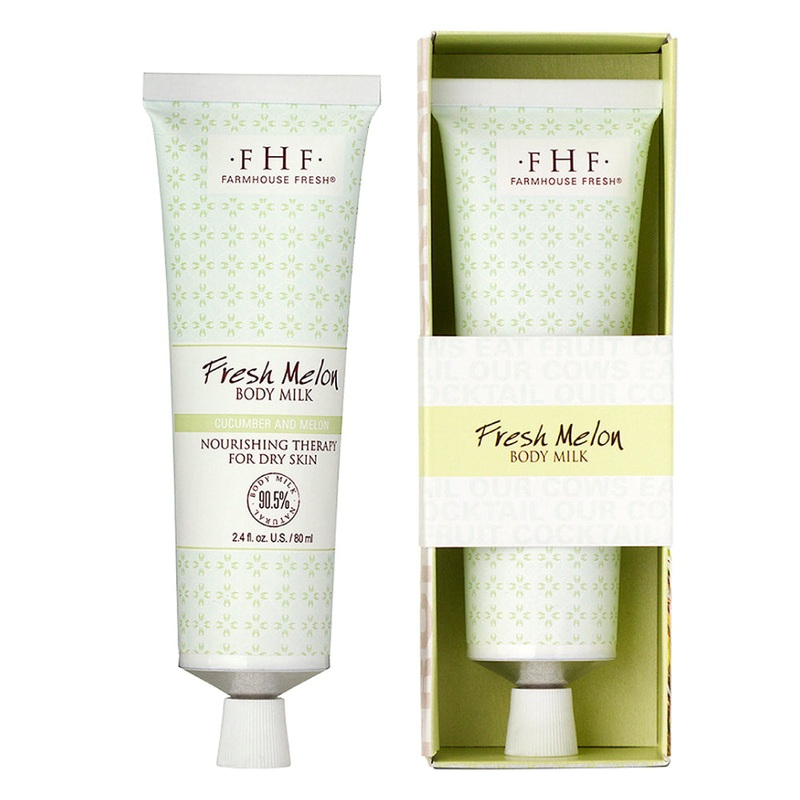 This product pours over you like milk and comes packaged in our adorable cow box with the statement Our Cows Eat Fruit Cocktail. Arrives in a 2 oz. travel-friendly tube with decorative box.