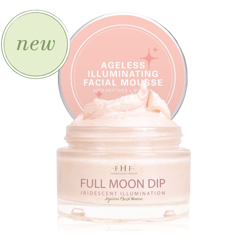 1.7 oz. glass jar with decorative boxnstagrammable skin in an instant! FarmHouse Freshs top-selling Moon Dip Ageless Facial Mousse is now available with a covetable subtle sheen that catches light at every turn meet Full Moon Dip. This light-as-air whip de