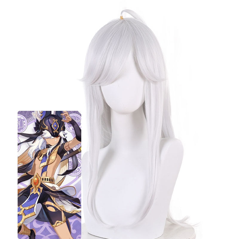 Game Genshin Impact Cyno Cosplay WigSource:Genshin ImpactCharacter: CynoColor:Silver whiteLength:60cm/23.6inchFeatures: Thiscosplay wigis based on the character Cyno from Genshin Impact. This fashion wig can be used in cosplay convention andHalloweenparty.