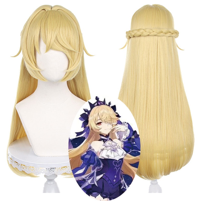 Game Genshin Impact Ein Immernachtstraum Fischl Cosplay WigsSource:Genshin ImpactCharacter: Ein Immernachtstraum FischlColor: BlondeLength: 75cm/29.5inchFeatures: Thiscosplay wigis based on the character Fischlfrom Genshin Impact. This fashion wig can be u