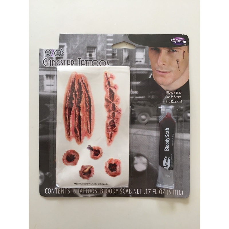 Fun World Gangster Tattoo KitHalloween 1920s Gangster Scars Tattoos Bloody Scab Makeup KitIncludes Temporary Tattoos & Bloody ScabFW49625