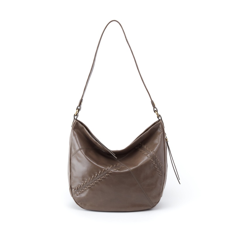 A slouchy hobo in vintage-hide leather featuring whipstitch accents immediately conforms to the shape of your body when you sling it over your shoulder.