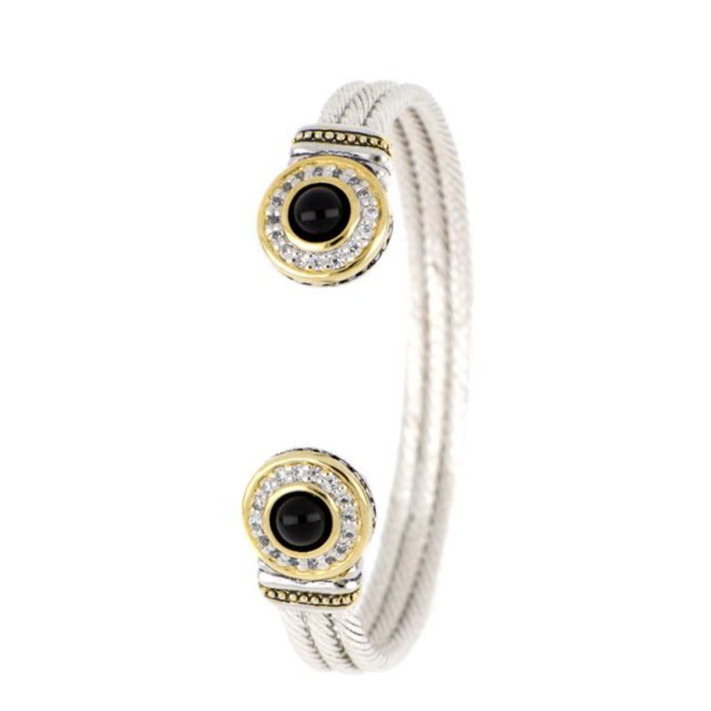 Genuine Black Onyx&Pav Cuff Bracelet by John Medeiros Jewelry Collections
