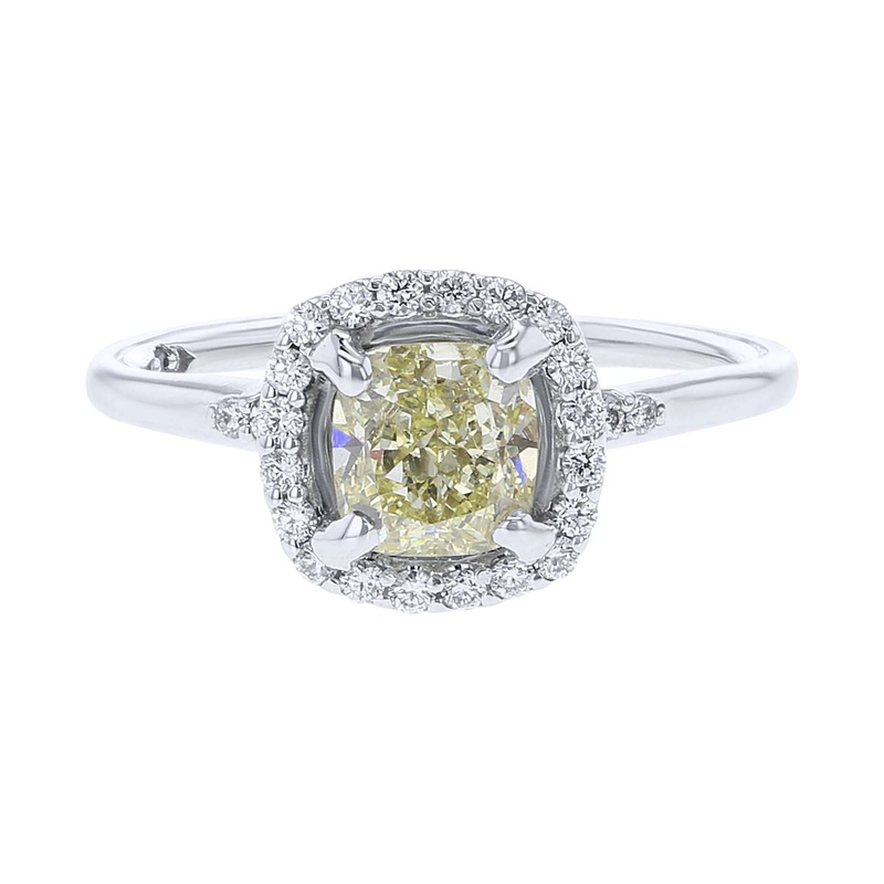 Get ready for the ultimate in love with the Giallo Certified Ready for Love Diamond Engagement Ring! Featuring a GIA certified cushion cut center diamond surrounded by a dazzling halo of round brilliant diamonds, this ring is sure to make your love shine bright like the sun.