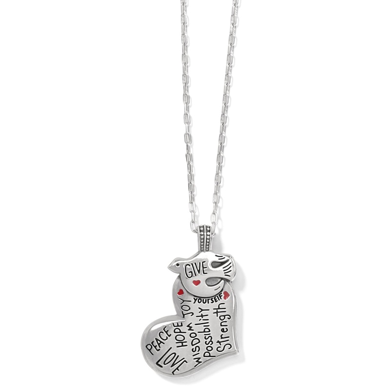 Give an inspiring quote shell wear it and share it. The whimsical necklace sends a little love message.Style: #JM3923Color: SilverClosure: Lobster ClawLength: 17" - 21" AdjustableFeatures: MessagePendant Drop: 1 1/2"Material: EnamelFinish: Silver plated