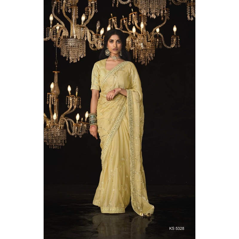 Beautiful glass tissue Partwear saree with brocade blouse