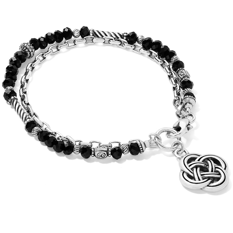 Charming and fun, this beaded silver bracelet is perfect for stacking! It adds a pop of wear-everywhere black to your look, along with our Interlok motif.
