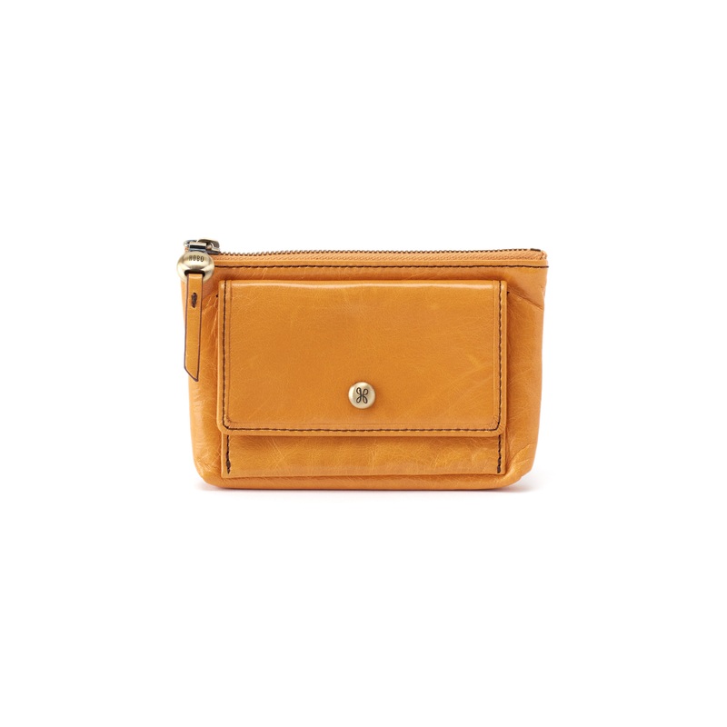Gogo is the perfect compact credit card case with a coin purse. Crafted in our signature vintage hide leather that only gets more beautiful over time with use and wear.Brushed Antique Brass hardwareTop zip closureExterior: Back wall ID holder; Front wall p