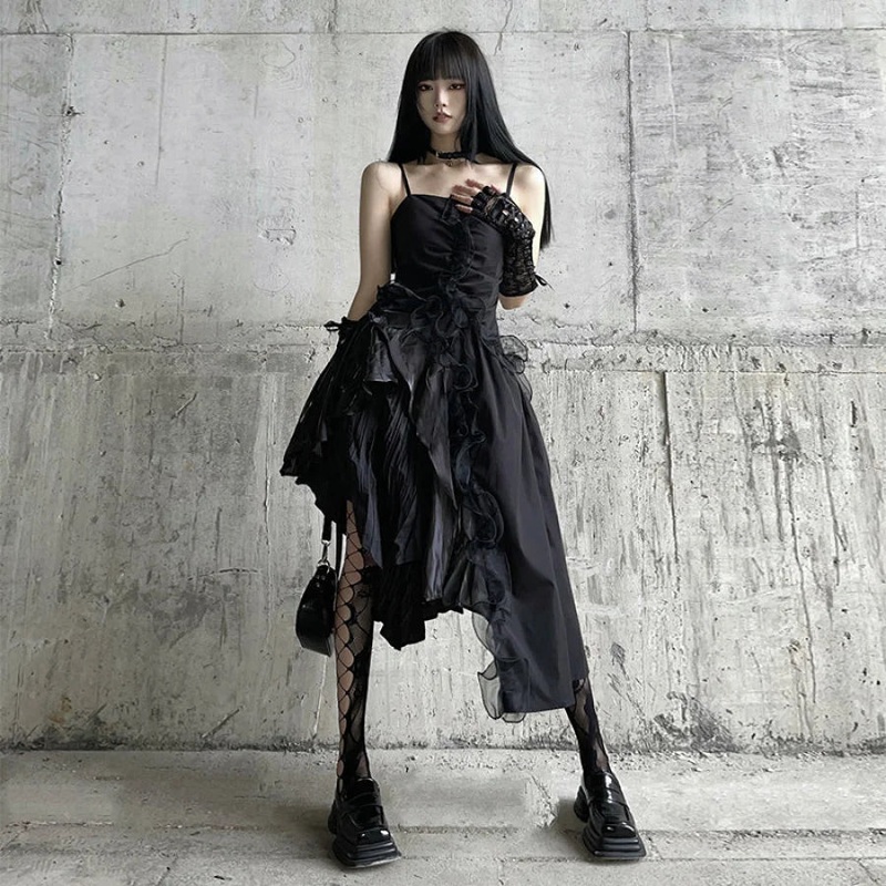 Be the first to review “Gothic Irregular Black Sling Dress S22408 XS”