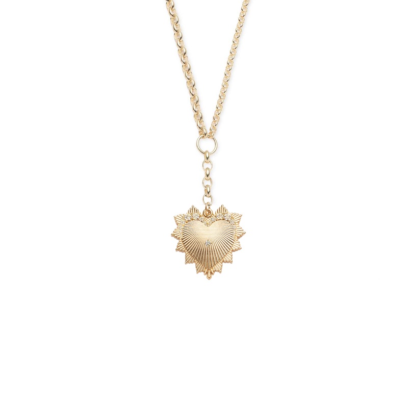 Crafted in 18-karat Yellow Gold, this 18″ Heavy Mixed Belcher Extension Chain Necklace symbolizes Love. A diamond punctuates the center of our Graduated Diamond Heart Love Token. Surrounded by pave diamond letters, the heart love token celebrates the seven classic types of love as defined thousands of years ago: Erosromantic love, Philiafriendship, Agapeuniversal love, Storgelove between parent and child, Ludusplayful love, Pragmalove founded on duty & reason, Philautiaself-love.
