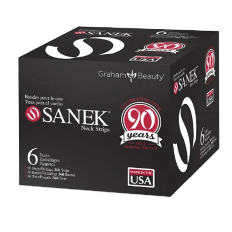 Made of a soft, highly absorbent tissue, SANEK Neck Strips catch loose hair and absorb perspiration and drips. They stretch to comfortably fit around the customer's neck, keeping it clean and protected. SANEK Neck Strips cost a little over a penny a piece