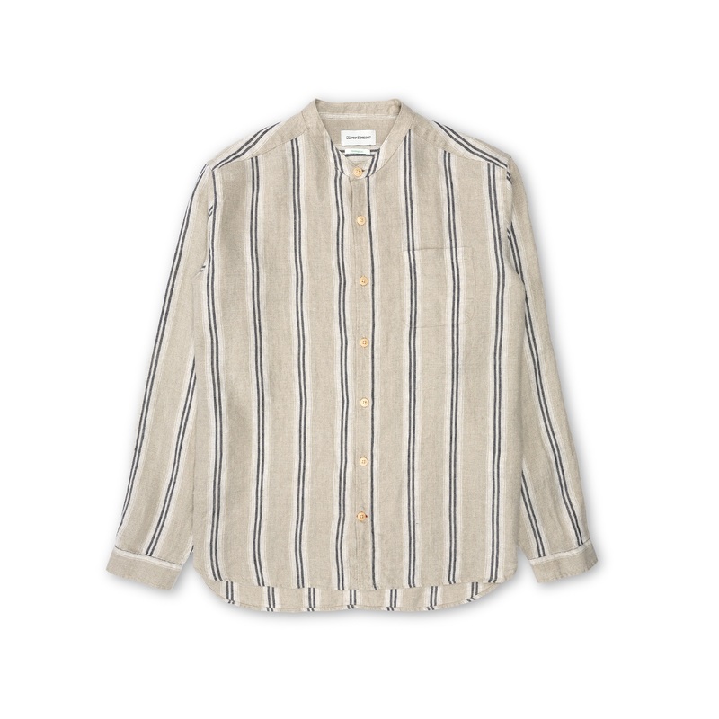 Born of utilitarian origins, the grandad collar has become a workwear classic, dressing down the archetypal men's shirt to something altogether more relaxed. This version has been cut in 100% linen and features two-tone vertical stripes for a relaxed of-du