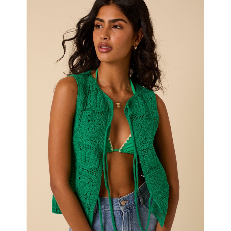 In a statement green shade, designed with shell motifs and finished with a trio of tie details for that perfect touch.It was expertly crafted by hand through our trusted network of suppliers.Crew neckTie fasteningString tie detailDesigned for a relaxed fit