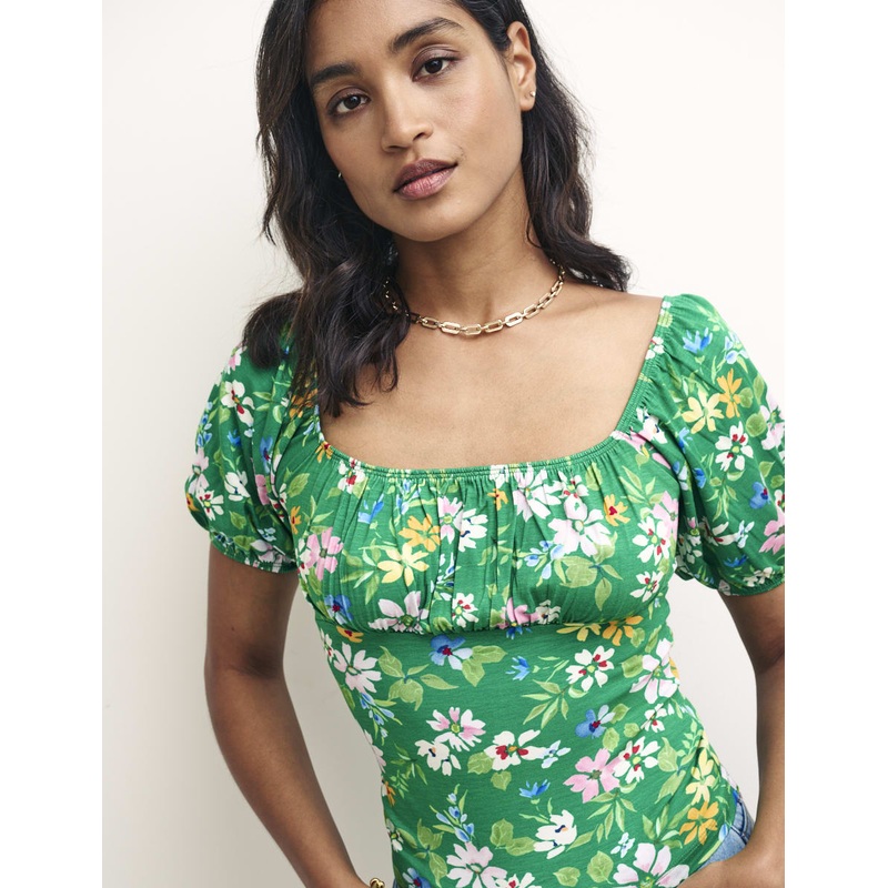 Oh this new number? This green floral top is sure to elicit all the compliments. It comes with a square neckline, ruched bodice and puff sleeves. Team yours with high waisted denim for whatever youve got planned this summer. Square neck Short puff sleeves