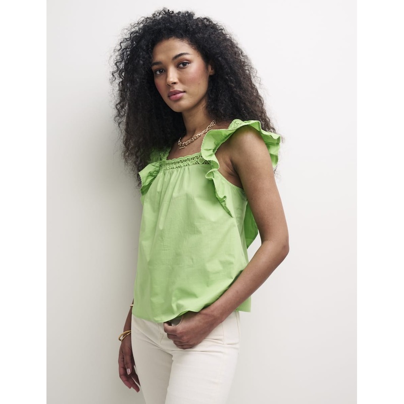 Were really into ruffles, especially on Monroe. Theres lots to love from the front a square neckline and heart lace trim but turn around and youll reveal a statement bow that falls elegantly down your back. Show her off with jeans.Square neckTrapeze cut th