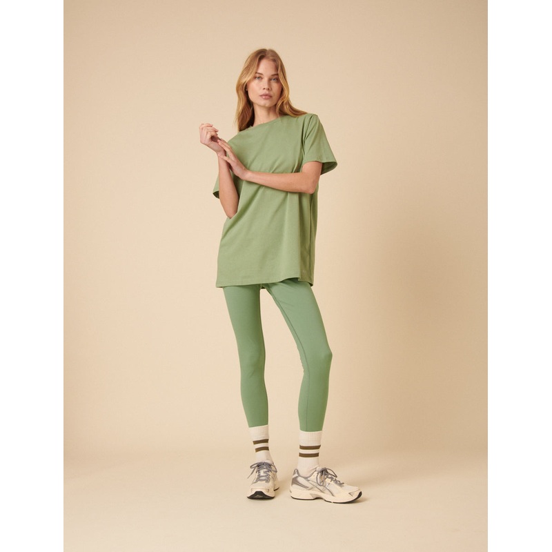 Your new wardrobe essential. Coming in pistachio green, this t-shirt is cut for a relaxed fit with dropped shoulders for that effortless look. Pair it with leggings or denim for easy, off duty days.