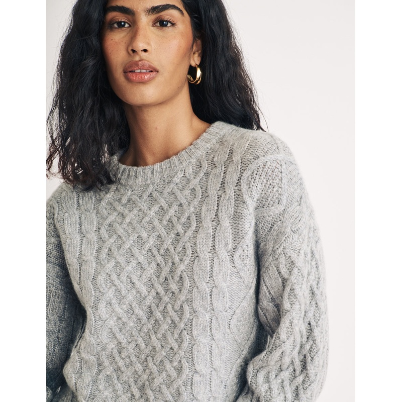 Grey Crew Neck Cable Knit Wool Jumper