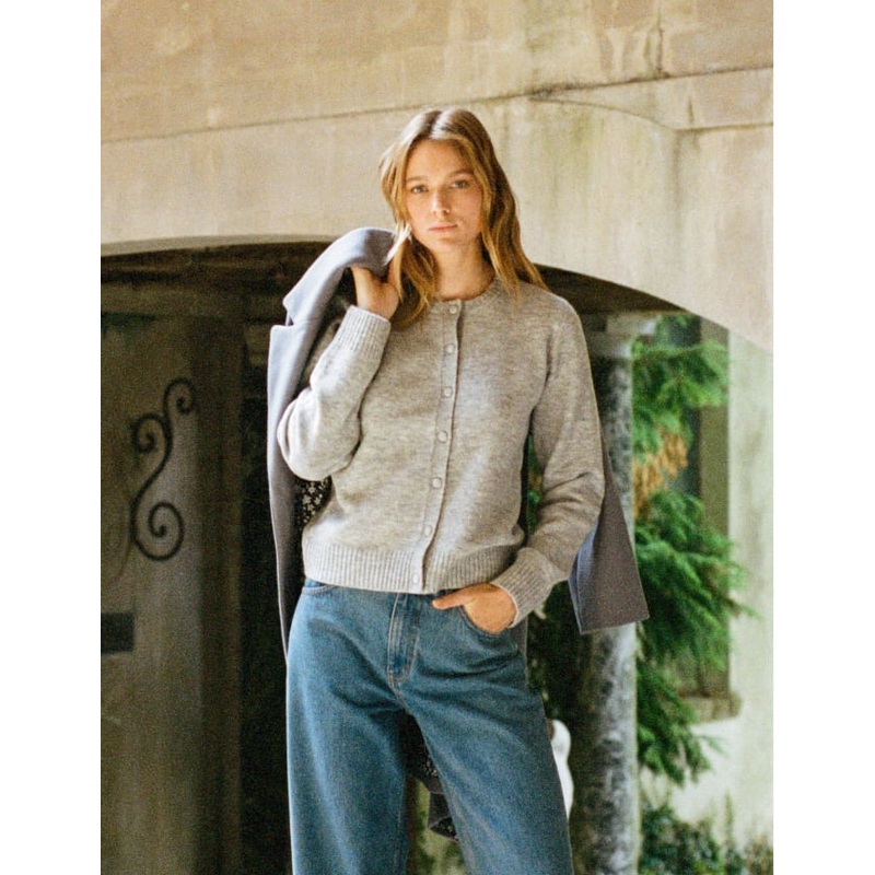 Sure to be worn for years to come. We love the cosy fabric covered buttons. Style yours solo or layer it over a shirt with a frilly oversized collar.Round neckLong sleevesButton frontRibbed trimsDesigned for an oversized fit, if you are looking for a close
