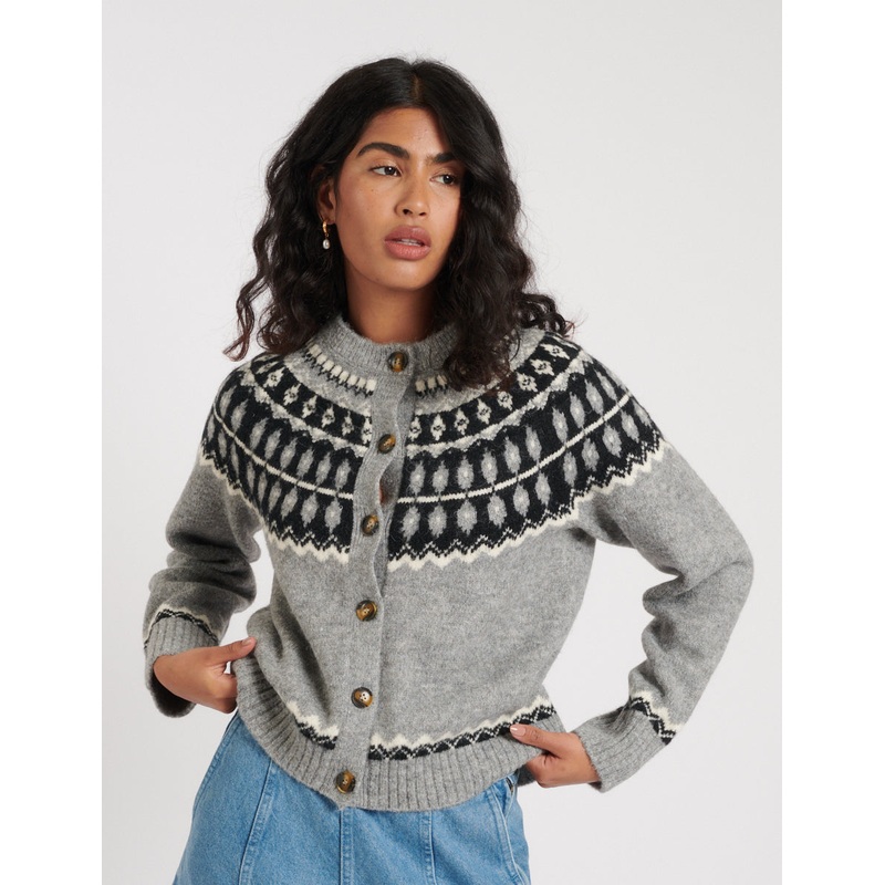 Be the first to review “Grey Fair Isle Wool Blend Knitted Cardigan”
