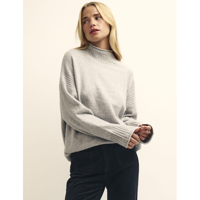 A grey jumper is a true wardrobe hero. Slightly oversized but stylish in equal measure this funnel neck knit is soft and effortlessly easy to wear. Style yours with everything.