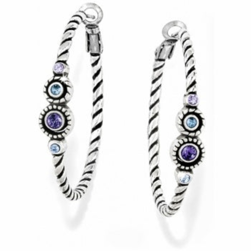 Lavender and aqua Swarovski crystals twinkle like distant lights in the night sky, along the rope-edge of these Halo Hoop earrings. Breathtaking in a silver-plated finish, these earrings will beguile you!